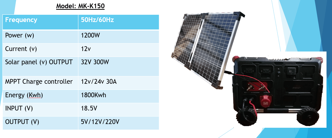 The MK-X150 is a custom built, innovative solar power box that is guaranteed to meet your off-grid power needs anywhere. Now taking orders.